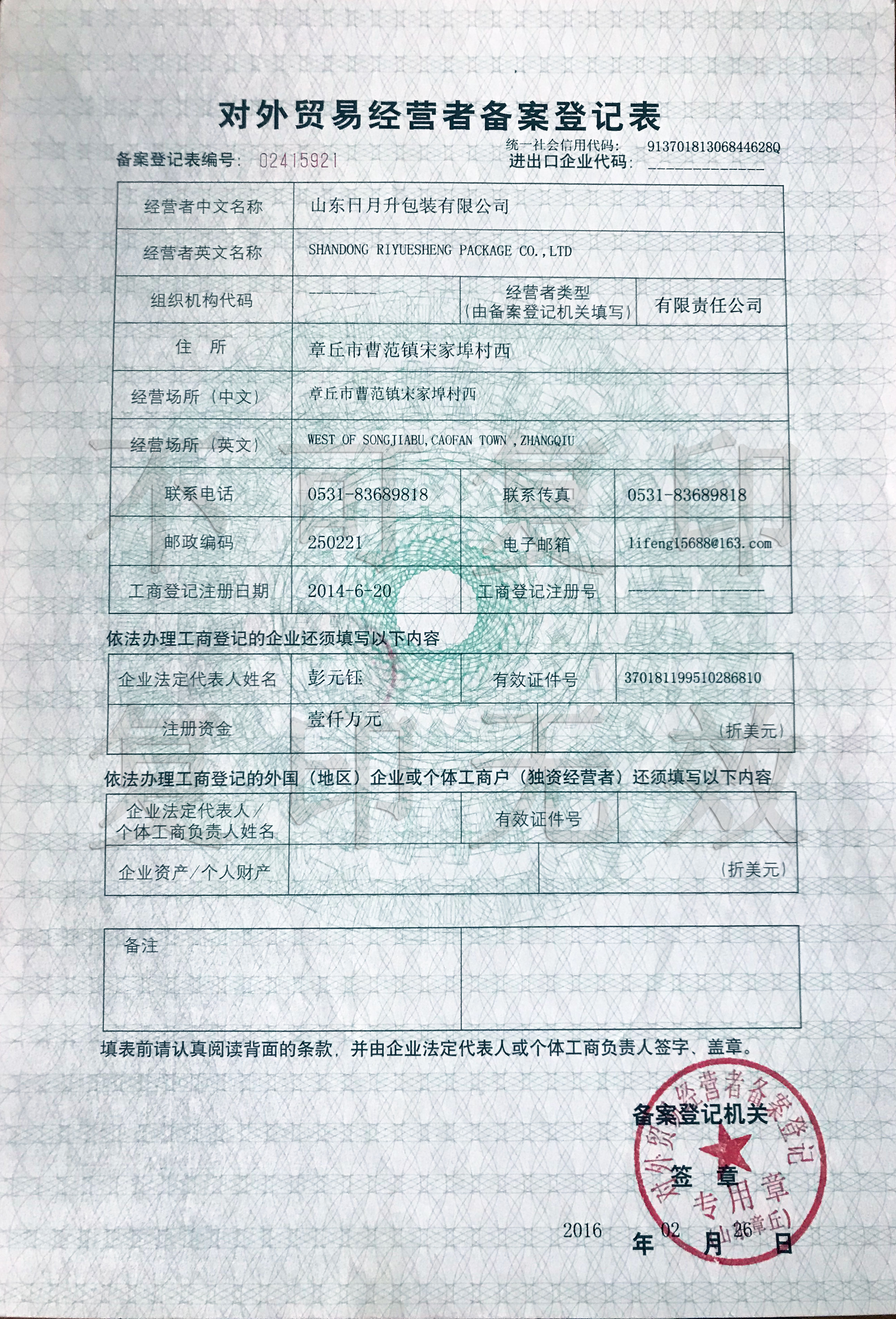 外貿登記備案表
